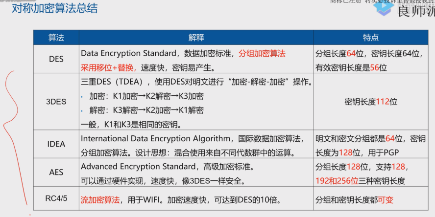以上五种,仅RC4/5为流加密算法,加密速度快。其余都是分组加密