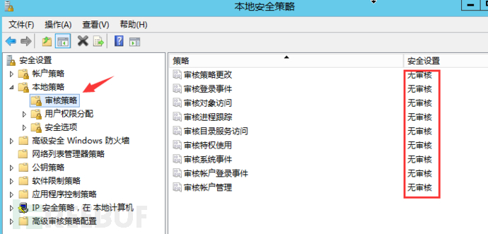 通过输入secpol.msc命令–》本地策略–》审核策略,查看其安全设置是否有成功、失败,如没有即未开启相关功能的审计功能。