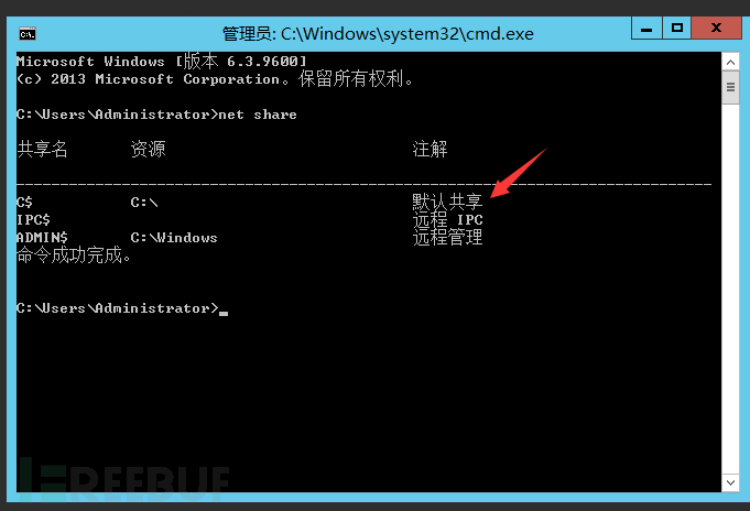 通过运行–》cmd–》输入net share,查看共享开启情况