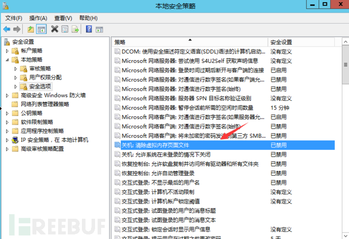 通过运行–》secpol.msc–》本地策略–》安全选项,查看是否启用“关机:清除虚拟内存页面文件”策略。