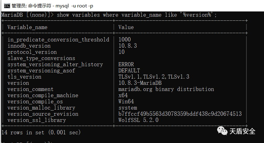 本次安装环境为Windows10专业版操作系统,数据库版本为10.8.3,单机部署过程比较简单就不在此进行讲解。本文针对MariDB等保测评进行实际操作,不妥之处还恳请留言指正,共同学习。