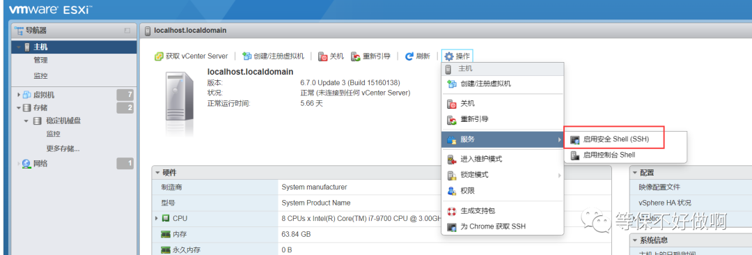 VMware ESXi 底层是一个定制版的Linux系统。可通过在控制台开启SSH服务进入Linux系统(默认是关闭SSH服务)。