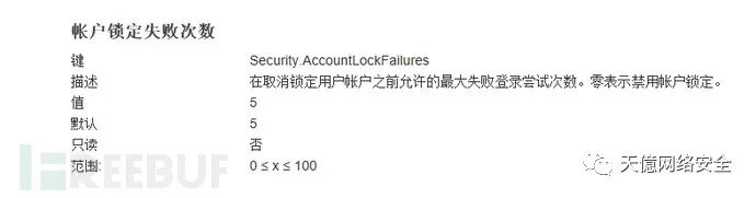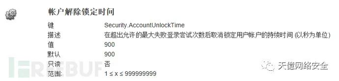 默认:相同账户登录失败次数达到5次后,锁定该账户900秒。