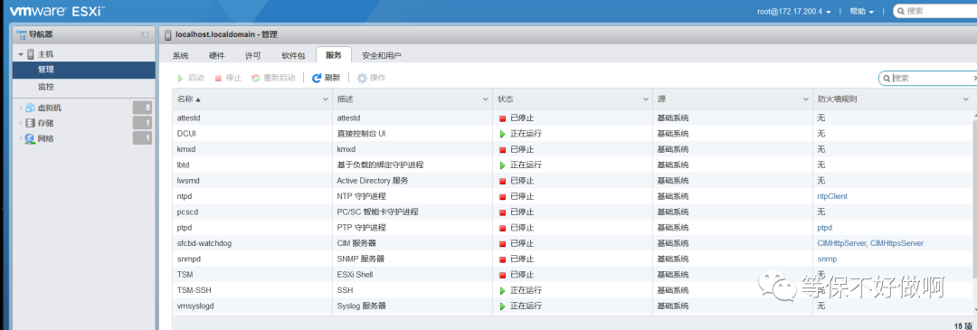 这里一般只看web界面服务的状态,确认运行的服务是否有些不为必要。