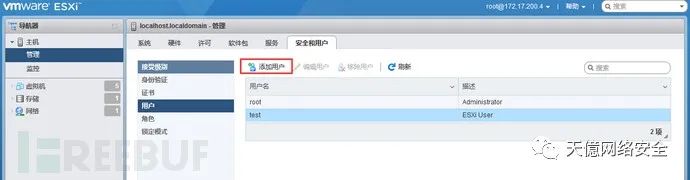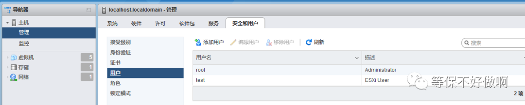 用户在此添加:主机→管理→安全和用户
