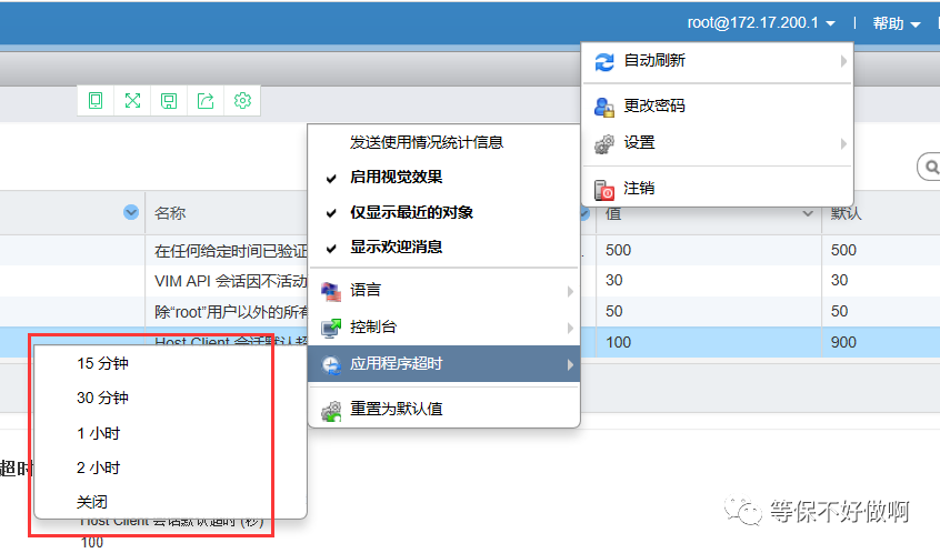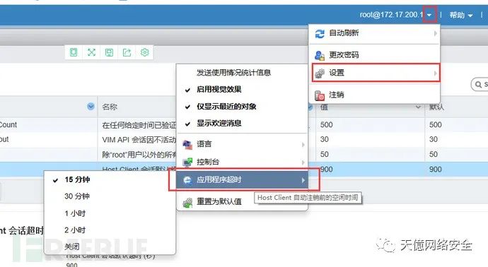 在web界面查看:主机→管理→系统→高级设置→对应键值为:Security.AccountLockFailures 、Security.AccountUnlockTime