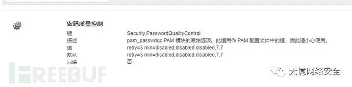 确认强制口令策略:主机→管理→系统→高级设置→对应键值为:Security.PasswordQualityControl