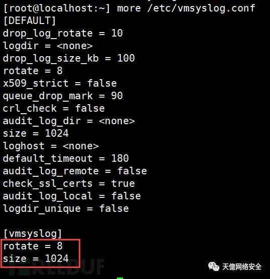 日志服务配置文件:/etc/vmsyslog.conf,参数与web界面的一致