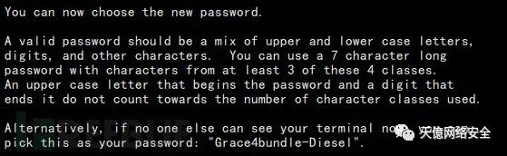 它居然强制给你用随机生成的密码?上述hanoi&call5Also就是新生成的口令,可以使用该口令登录系统。