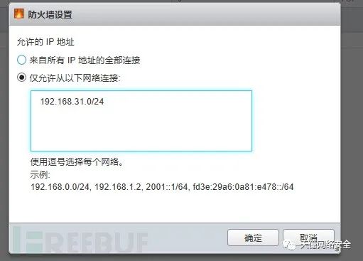 我们可以点击编辑设置,勾选仅允许从以下网络连接,并输入对应的ip地址