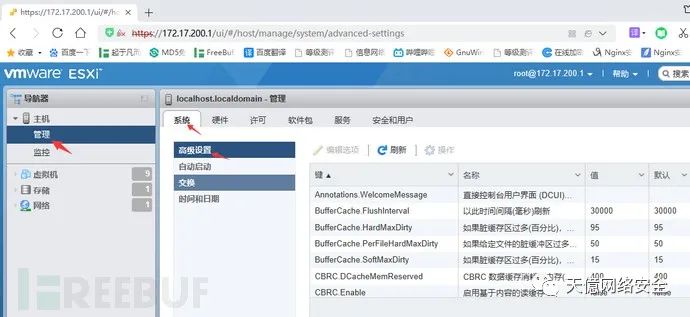 ①web界面:主机→管理→系统→高级设置