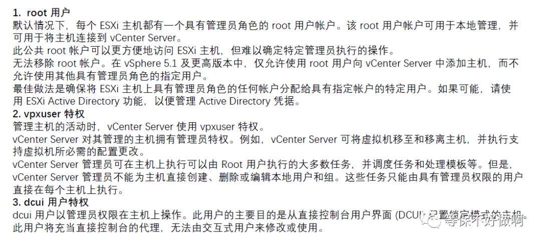 这里插播一个小事件:记得有一个用户,他们做了等保,然后出了安全事件,某管理员通过虚拟机的管理平台将所有虚拟机删除,导致数据丢失,系统无法正常运行。不过好像是还好有离线的数据备份,数据这块还能恢复回来,但是这造成的危害也是很大的。当时网警看了下等保报告,说为啥这个虚拟机的管理平台没有作为测评对象,如果权限这块没做好,提出问题就是客户自身没落实到位。所以说该虚拟机管理平台的权限管控还是有需要的,同时也需要对日志进行保护,到时候能溯源,所以虚拟机的管理平台对于等保中的要求也是需要进行一下落实的。