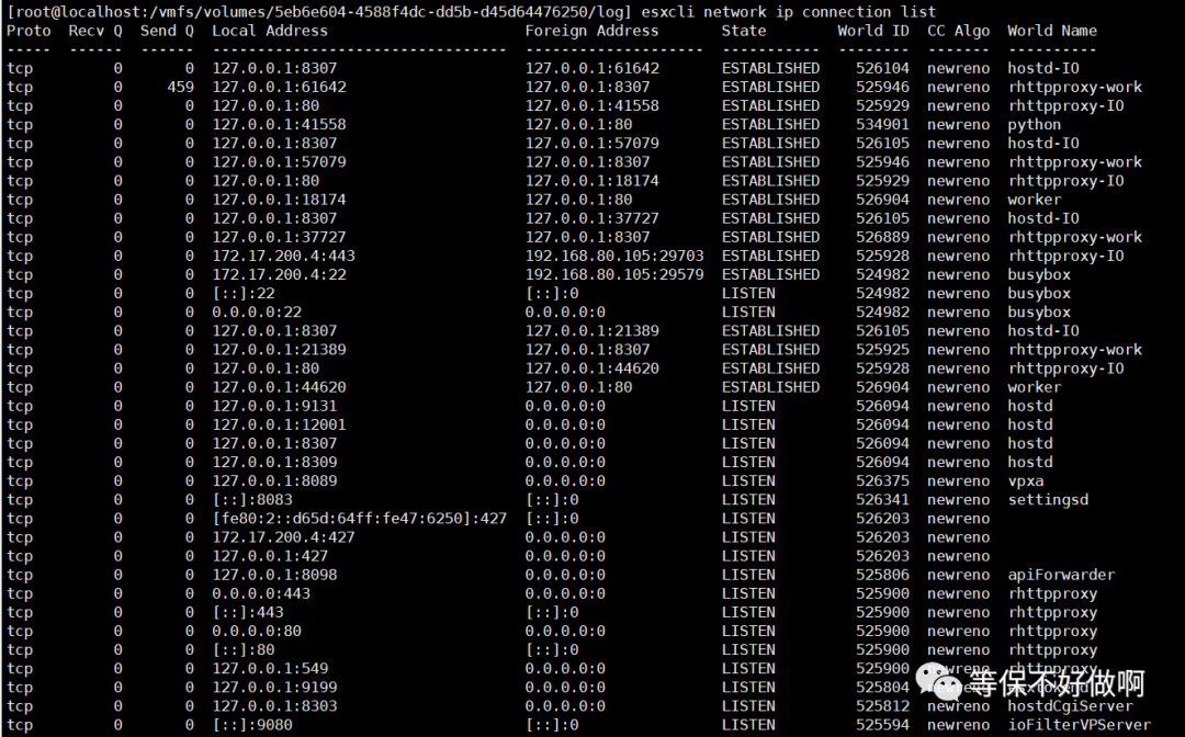 esxcli network ip connection list