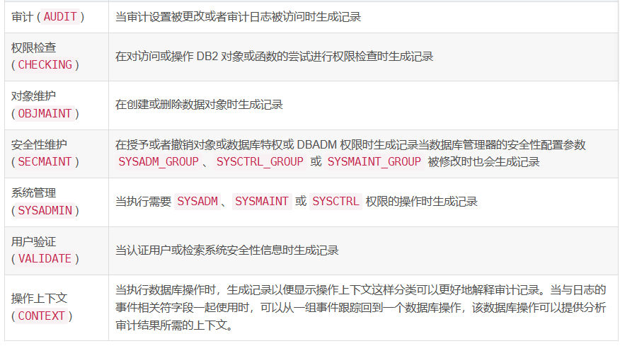 10、 db2audit query details : 查看数据库具体的审计规则的详细配置