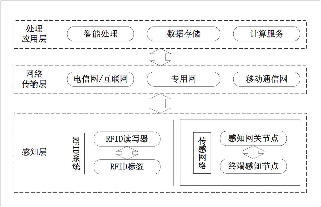 - 感知层:包括传感器节点和传感网网关节点,或 RFID 标签和 RFID 读写器,同时也包括这些感知设备及传感网网关、RFID 标签与阅读器之间的短距离通信(通常为无线)部分,该层面主要利用 RFID、传感器、二维码等随时随地获取物体的信息。