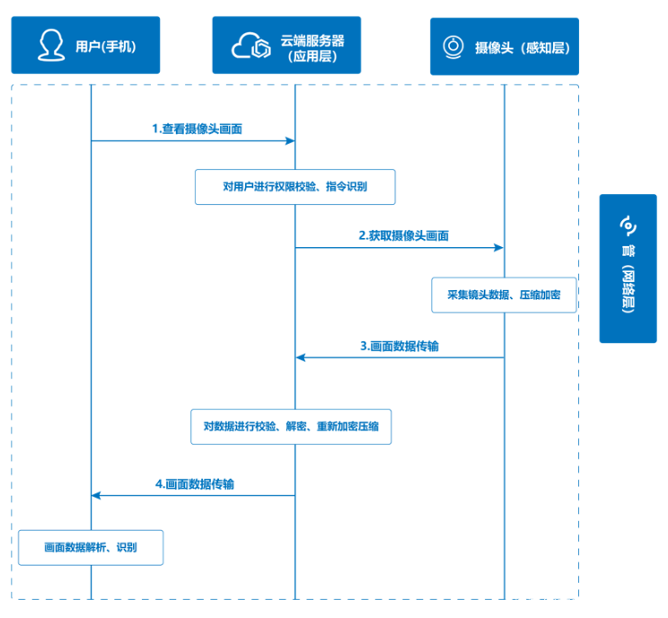 1)过手机的APP远程访问家里的摄像机,查看家里的情况,并将视频实时上传到云上。在这个过程中,物联网模型由用户(手机)、云端服务器、摄像头、传输系统四元素组成;