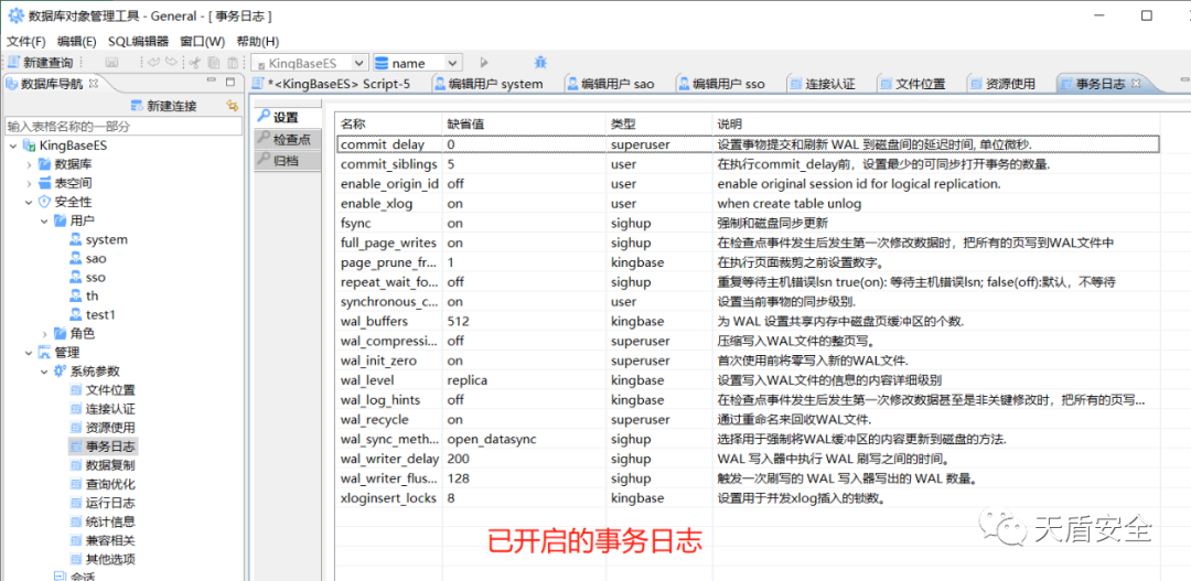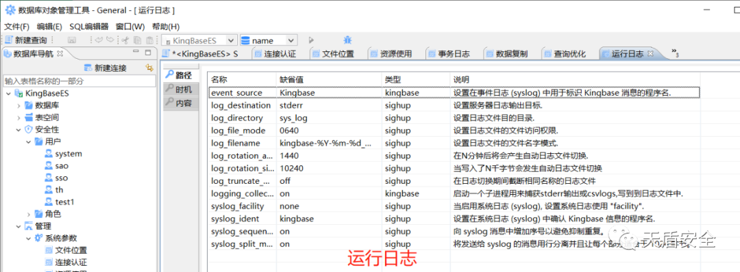2)核查是否部署第三方工具(数据库审计系统)增强人大金仓数据库日志功能。记录第三方审计工具的审计内容,查看是否包括事件的日期和时间、用户、事件类型、事件是否成功及其他与审计相关的信息。