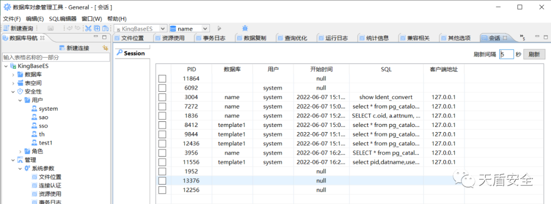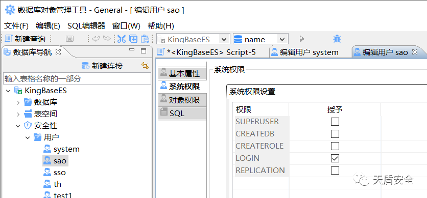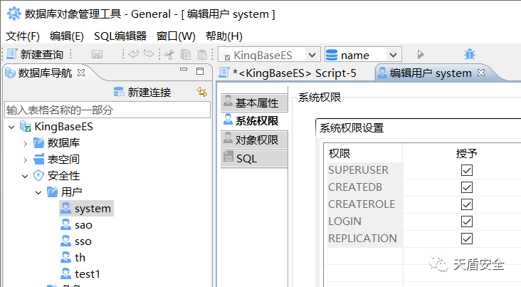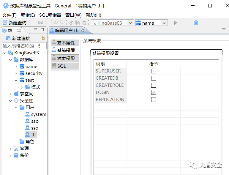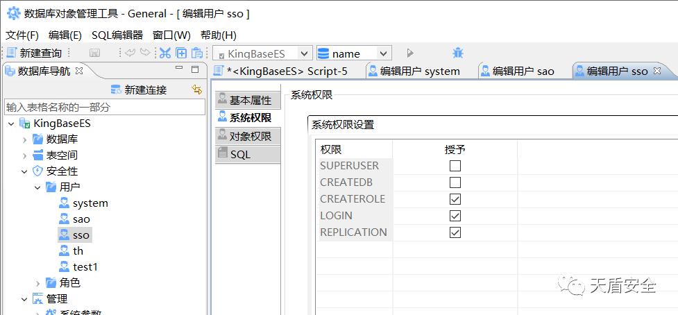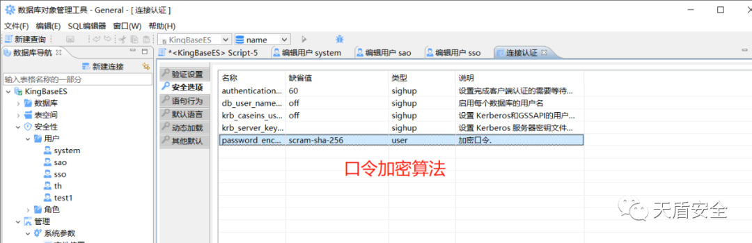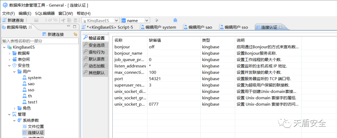 其他安全配置可在人大金仓数据库对象管理工具中看到。