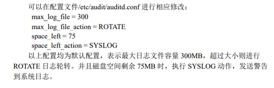 示最大日志文件容量修改该文件中etc/audit/auditd.conf