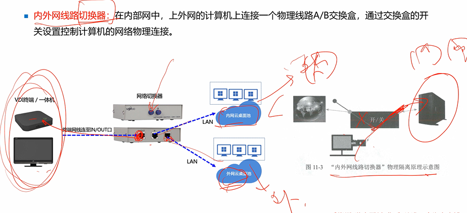 物理隔离的典型产品是网闸。除此之外还有内外网线路切换器等设备。