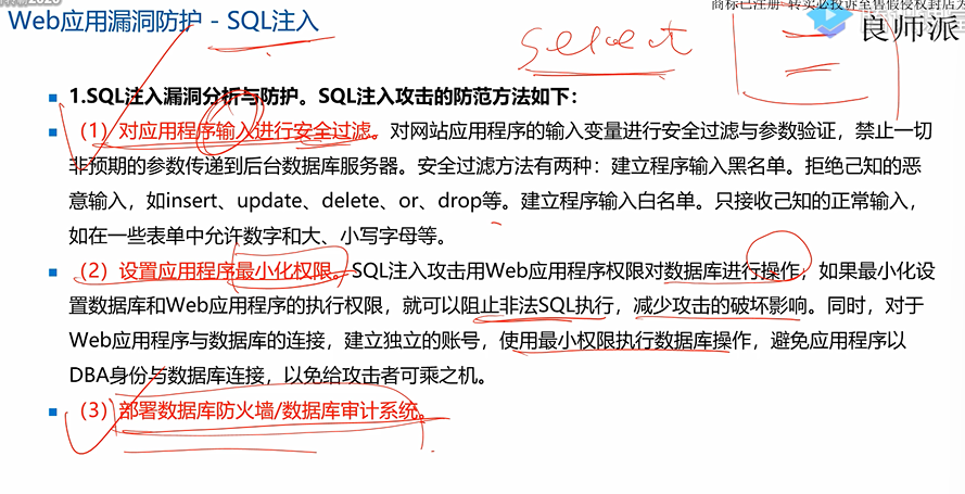 给应用程序最小化权限,对用户输入内容进行过滤。
